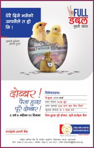 काठमाडौ । राष्ट्रिय वाणिज्य बैंक लिमिटेडले फुल डबल मुद्दती खाता सञ्चालनमा ल्याएको छ । ग्राहकले