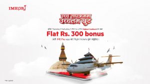 काठमाडौं । आइएमई ग्रुपद्वारा संचालित आइएमई डिजिटल सोलुसन लिमिटेडद्वारा प्रवद्र्घित “आइएमई पे”ले हवाई उडान टिकटमा