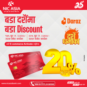 काठमाडौ । एन आई सी एशिया बैंकले दशैंको उपलक्षमा दराज ई–कमर्शबाट अनलाइन किनमेल गर्ने आफ्ना