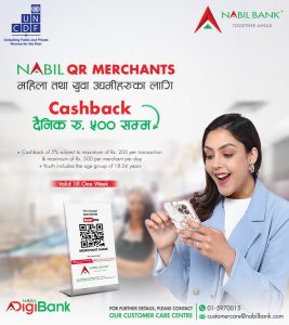 काठमाडौ । नबिल बैंकले नयाँ वर्षको अवसरमा महिला तथा युवा क्यूआर मर्चेन्टलाई लक्षित गर्दै क्यूआर