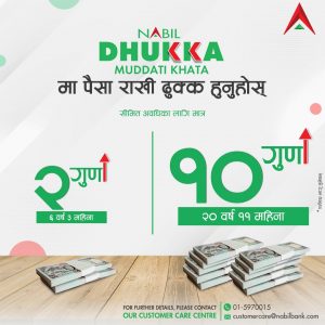 काठमाडौ । नबिल बैंकले आर्कषक ब्याजदर सहित “नबिल ढुक्क मुद्दती खाता” बजारमा ल्याएको छ ।