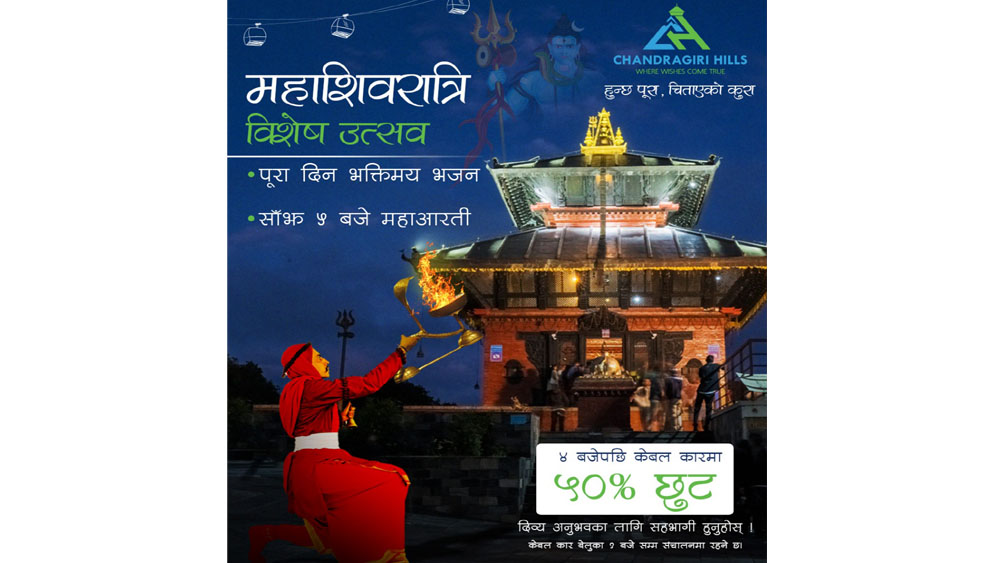 काठमाडौँ । यहि फागुन १४ गते बुधवार पर्न गएको महाशिवरात्री २०८१ को पावन अवसरमा चन्द्रागिरी भालेश्वर महादेव मन्दिर परिसरमा महाशिवरात्री विशेष भक्तिमय उत्सव आयोजना हुने भएको छ । महाशिवरात्रीमा चन्द्रागिरीमा अवस्थित भालेश्वोर महादेवको महिमालाई जोड्दै विशेष भक्तिमय उत्सव आयोजना गर्न लागिएको हो । महाशिवरात्रिको पुरै दिन भालेश्वर मन्दिर परिसरमा विशेष भक्तिमय भजन कार्यक्रम समेत संचालन…