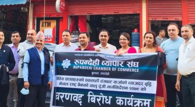 पोखरा । बैंक तथा वित्तिय संस्थाले अस्वभाविक रूपमा ब्याजदर बढाएपछि पोखराका व्यवसायी आन्दोलित भएका छन् । होटल संघ पोखराले एकतर्फी रूपमा बढाएको ब्याजदर तत्कालै नघटाए राष्ट्र बैंक र अर्थ मन्त्रालय घेराउ गर्ने चेतावनी दिएको छ । संघ अन्तर्गतका ब्यवसायी भेला भएर बैंक तथा वित्तिय संस्था विरुद्ध संघर्षका कार्यक्रम सञ्चालन गर्ने निर्णय गरेका हुन् । संघका…