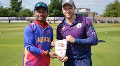 काठमाडौं । आइसिसी विश्वकप क्रिकेट लिग-२ अन्तर्गत त्रिकोणात्मक सिरिजमा नेपालविरुद्ध नेदरल्याण्ड्सले टस जितेको छ । स्कटल्याण्डको डन्डीमा टस जितेर नेदरल्याण्ड्सका कप्तान स्कट एडवार्डसले बलिङ रोजेका हुन् । नेदरल्याण्ड्सले बलिङ रोजेपछि नेपालले ब्याटिङको निम्तो पाएको छ । सिरिजमा नेपालको यो चौथो तथा अन्तिम खेल हो । त्यस्तै नेपाली टीमका दुई भरपर्दा अलराउन्डर सोमपाल कामी र गुल्शना…