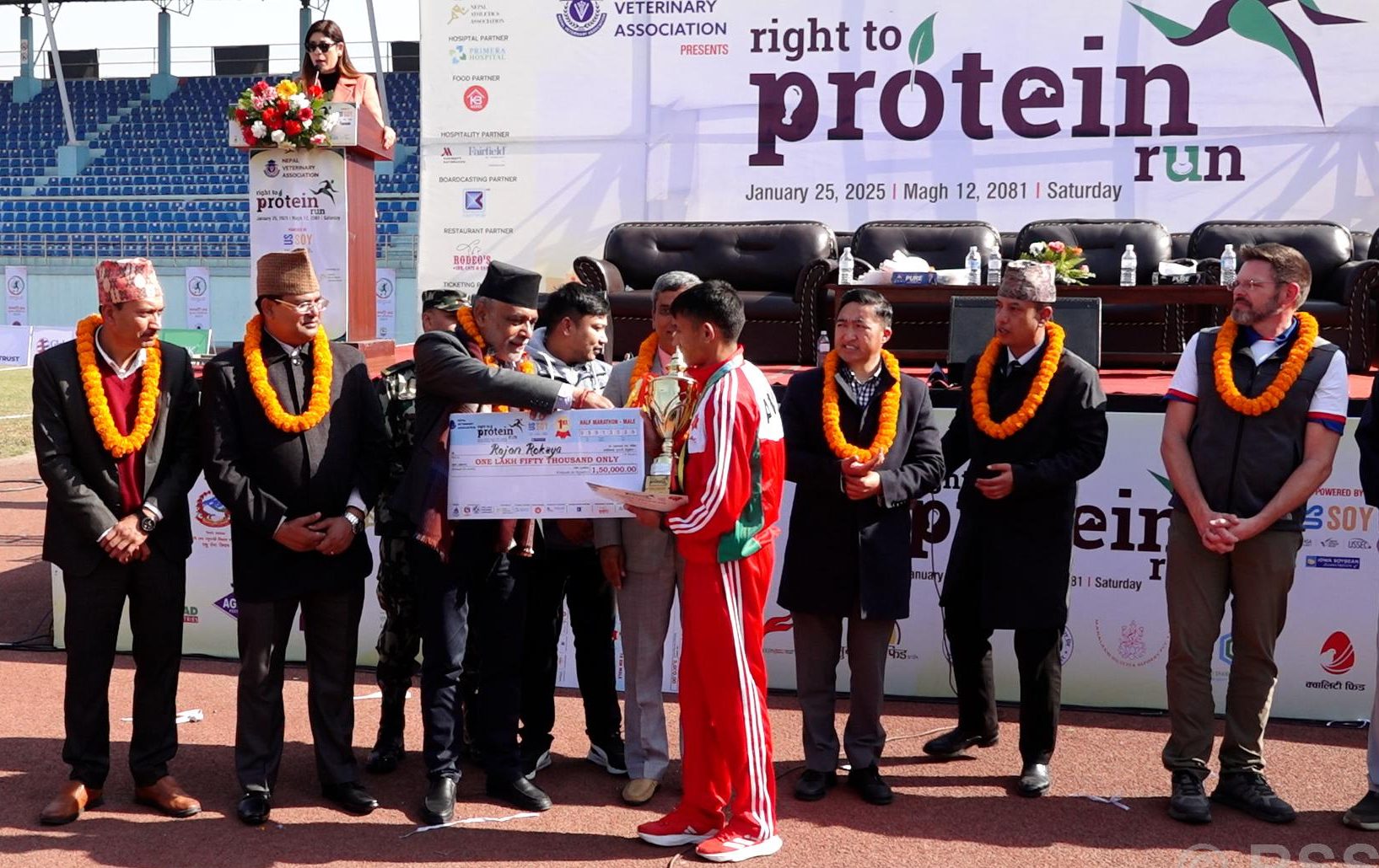 काठमाडौँ । मुलुककै सबैभन्दा धेरै खेलाडीको सहभागिता रहेको चौथो संस्करणको ‘राइट टु प्रोटिन’ दौड प्रतियोगिता सम्पन्न भएको छ । नेपाल भेटेरिनरी एशोसिएसनको आयोजनामा भएको प्रतियोगितामा विभिन्न आठ विधामध्ये खुला हाफ म्याराथनमा महिलातर्फ सन्तोषी श्रेष्ठ र पुरुषतर्फ राजन रोकाय प्रथम हुनुभएको छ । दश किलोमिटर (खुला) पुरुषतर्फ सञ्जय श्रेष्ठ, पाँच किमी (खुला) महिलातर्फ फूलमति राना, कक्षा…