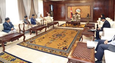 काठमाडौं । उपराष्ट्रपति निर्वाचन र सरकार विस्तार बारे छलफल गर्न १० दलीय गठबन्धनको बैठक सुरु भएको छ । बैठक केहीबेरदेखि प्रधानमन्त्री निवास बालुवाटारमा जारी रहेको हो । उपराष्ट्रपति निर्वाचन आगामी शुक्रबार हुँदैछ । बैठकमा नेकपा माओवादी केन्द्रका अध्यक्षसमेत रहेका प्रधानमन्त्री पुष्पकमल दाहाल प्रचण्ड, नेपाली कांग्रेसका सभापति शेरबहादुर देउवा, लोसपा अध्यक्ष महन्थ ठाकुर, नेकपा एकीकृत समाजवादीका…