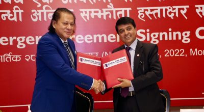 काठमाडौं । ग्लोबल आइएमई बैंक लिमिटेड र लक्ष्मी इन्टरकन्टिनेन्टल प्रा.लि. बीच सहुलियत ब्याजदरमा विद्युतीय सवारी कर्जा प्रवाह गर्ने समझदारी पत्रमा हस्ताक्षर भएको छ । बिहीबार बैंकमा आयोजित एक कार्यक्रमबीच बैंकका साना तथा मझौला कर्जा विभाग प्रमुख रुपेन्द्र वाग्ले र लक्ष्मी इन्टरकन्टिनेन्टल प्रा.लि.का जनरल म्यानेजर इन्द्रप्रसाद सापकोटाले उक्त समझदारी पत्रमा हस्ताक्षर गरेका छन् । समझदारी अनुसार…