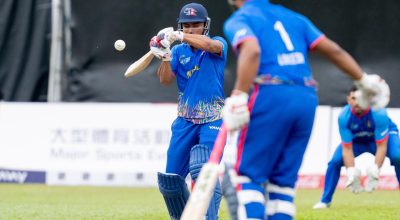 काठमाडौं । हङकङमा जारी हङकङ सिक्सेस क्रिकेट प्रतियोगितामा नेपाल दक्षिण अफ्रिकासँग ४ विकेटले पराजित भएको छ । जितको लागि नेपालले दिएको ५९ रनको लक्ष्य पछाएको दक्षिण अफ्रिकाले ३.४ ओभरमा २ विकेट गुमाएर पूरा गर्यो । उसका लागि ब्लेक सिम्पसनले सर्वाधिक अविजित ३० रन बनाए । यता नेपालका लागि लोकेश बमले २ विकेट लिए । त्यसअघि…