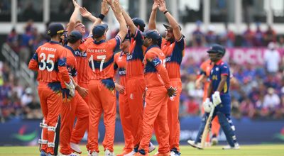 काठमाडौं । जारी आइसीसी टी-२० विश्वकपमा स्कटल्याण्डले नामिबियालाई पराजित गरेको छ । गएराती सम्पन्न समुह बि अन्तर्गतको यस खेलमा स्कटल्याण्डले नामिबियालाई ५ विकेटले पराजित गरेको हो । नामिबियाले दिएको १५६ रनको लक्ष्य पछाएको स्कटल्याण्डले १८।३ ओभरमा ५ विकेट गुमाउदै लक्ष्य पुरा गरेको थियो । यस अघि पहिला ब्याटिंग गर्दै नामिबियाले २० ओभरमा ९ विकेट गुमाएर…