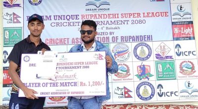 नेपालगन्ज । बाँके जिल्ला फुटबल संघको आयोजनामा भएको एन्फा कम्युनिटी कोचिङ कोर्ष सम्पन्न भएको छ । चैत ६ देखि ९ गते सम्म संचालन हुने एन्फा कम्युनिटी कोचिङ कोर्षमा बाँके, बर्दिया, सुर्खेत, दाङ, कैलाल, डोटी, कालिकोट, काठमाडौं लगायतका जिल्लाबाट ४३ जनाको सहभागिता रहेको थियो । कोर्षमा सहभागि भएकाहरुलाई शुक्रबार प्रमाण पत्र प्रदान गरिएको छ । एन्फा…