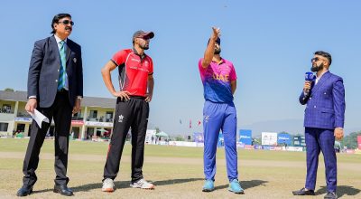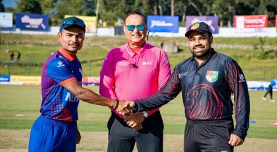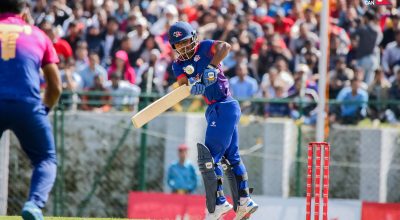 काठमाडौं। काठमाडौंमा जारी टी–२० विश्वकप एसिया छनोट खेलमा अहिले सिंगापुर र नेपालबीच प्रतिस्पर्धा भइरहेको छ । सिंगापुरले दिएको १४६ रनको लक्ष्य पछ्याउने क्रममा नेपालका कुशल भुर्तेलले अर्धशतक प्रहार गरेका छन् । उनले विभिजत २९ बलमा ६ चौका र २ छक्काको मद्दतमा ५४ रन बनाएका हुन् । नेपालले १० ओभरको समाप्तिमा एक विकेट गुमाएर ९४ रन…
