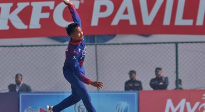 काठमाडौं । आइसिसी विश्वकप लिग-२ त्रिकोणात्मक ओडिआई सिरिज अन्तर्गत अन्तिम खेलमा यूएईले नेपाललाई विशाल लक्ष्य दिएको छ । त्रिभुवन विश्वविद्यालय, किर्तिपुरको खेल मैदानमा टस जितेर ब्याटिङ थालेको यूएईले ५० ओभरमा ६ विकेट गुमाउँदै ३१० रन बनाएको छ । यूएईका लागि आसिफ खानले विस्फोटक शतक प्रहार गरे । उनले ४२ बलमा ४ चौका र ११ छक्काको…