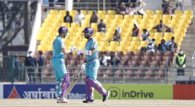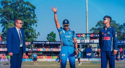 काठमाडौं । नेपाल प्रिमियर लिग (एनपिएल)अन्तर्गत आजको पहिलो खेलमा पोखरा एभेञ्जर्सले लुम्बिनी लायन्सलाई जीतका लागि १५१ रनको चुनौतीपूर्ण लक्ष्य दिएको छ । र्कीतिपुरस्थित त्रिभुवन विश्वविद्यालय अन्तरराष्ट्रिय क्रिकेट मैदानमा टस हारेर पहिले ब्याटिङ गरेको पोखराले निर्धारित २० ओभरमा पाँच विकेट गुमाउँदै १५० रन बनायो । पोखराले पारीको सुरुआत राम्रो गरेन । उसले १५ रन बनाउँदा दिनेश…