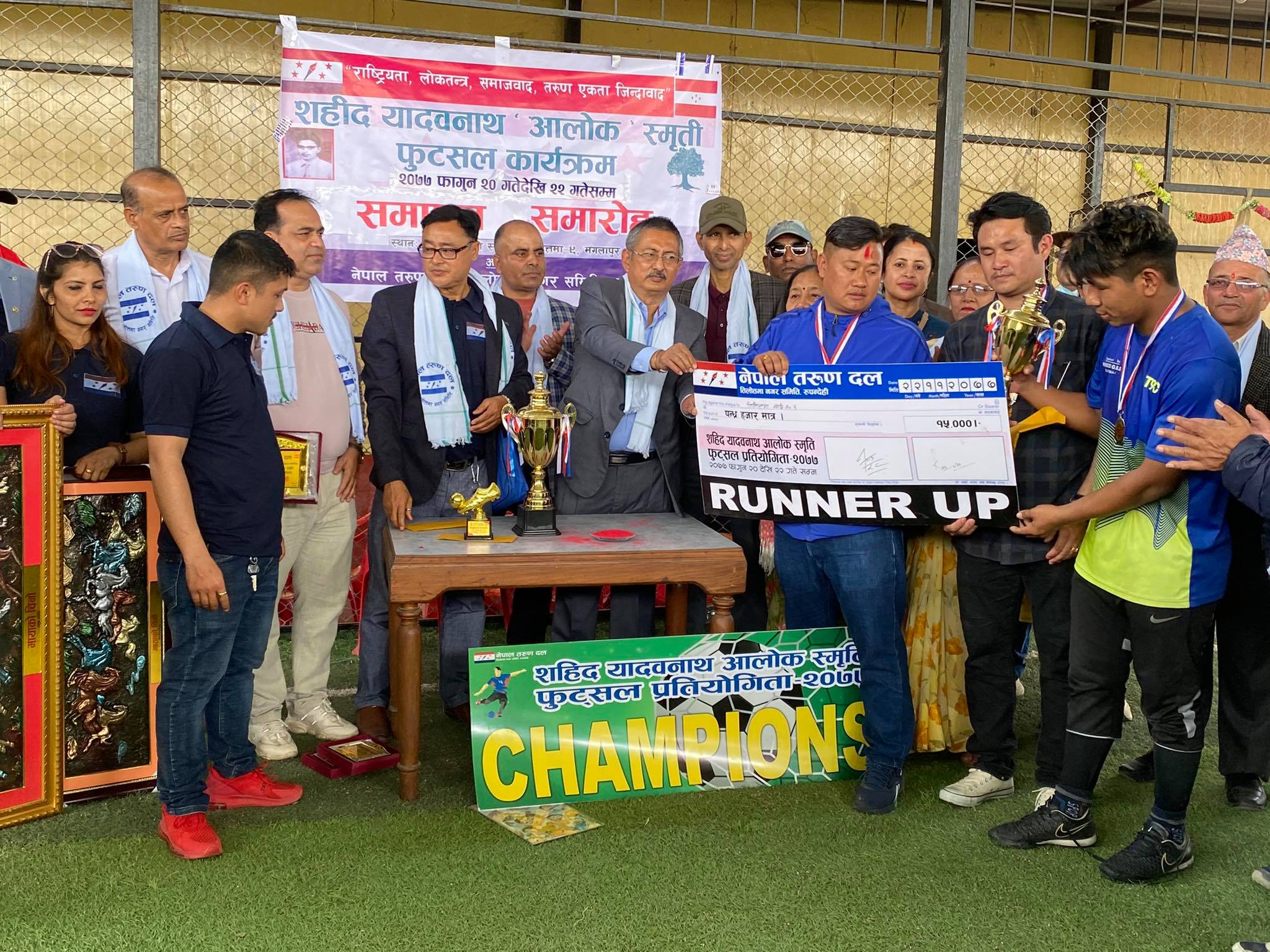 बुटवल । रुपन्देहीमा सम्पन्न शहिद यादवनाथ आलोक स्मृति फुटसल प्रतियोगिता २०७७ को उपाधि तिलोत्तमा नगरपालिका वडा नं ४ ले हात पारेको छ । शनिबार भएको फाईनलमा वडा नं. १ माथि ट्राइबेकरमा ३-२ गोल अन्तरको जित निकाल्दै उपाधि चुमेको हो । उपाधिसंगै वडा नं. ४ नगद ३० हजार रुपैयाँ, कप, मेडल, प्रमाणपत्रबाट पुरस्कृत भएको छ भने…