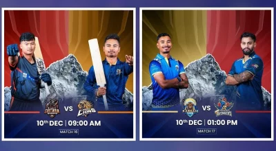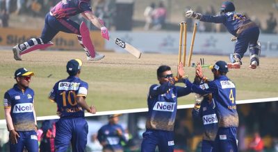 काठमाडौं । नेपाल प्रिमियर लिग (एनपीएल)मा रोहित पौडेल नेतृत्वको लुम्बिनी लायन्सले चितवन राइनोजलाई ३३ रनले पराजित गरेको छ । यससँगै लगातार तीन खेलको हारपछि लुम्बिनीले पहिलो जित निकालेर राहतको श्वास फेरेको हो । कीर्तिपुरस्थित त्रिवि क्रिकेट मैदानमा टस हारेर ब्याटिङमा ओर्लिएको लुम्बिनीले निर्धारित २० ओभरमा ६ विकेट गुमाएर १६७ रन बनाएको थियो । १६८ रनको…
