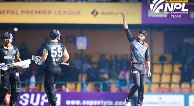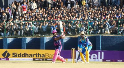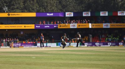 काठमाडौं । नेपाल प्रिमियर लिग (एनपीएल) क्रिकेट अन्तर्गत मंगलबार बिहानको खेलमा सुदूरपश्चिम रोयल्सले विराटनगर किंग्सलाई १८३ रनको चुनौती दिएको छ ।कीर्तिपुरस्थित त्रिभुवन विश्वविद्यालय (टियु) मैदानमा टस हारेर सुदूरपश्चिमले ब्याटिङको निम्तो पाएको सुदूरपश्चिमले पूरै २० ओभर खेल्दै ७ विकेटको क्षतिमा १८२ रन बनाएको हो । सुदूरपश्चिमका लागि कप्तान दीपेन्द्रसिंह ऐरीले शानदार अर्धशतक पूरा गरे । उनले…