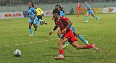 काठमाडौं । अखिल नेपाल फुटबल सङ्घ (एन्फा) ले राजधानीमा जारी साफ महिला च्याम्पियनसिप फुटबलअन्तर्गत फाइनलको खेलको टिकट बिक्री तत्कालको लागि स्थगित गरेको छ । त्रिपुरेश्वरस्थित दशरथ रङ्गशालामा यही कात्तिक १४ गते हुने नेपाल र बङ्गलादेशबीचको फाइनल खेलको टिकट अर्को सूचना जारी नभएसम्मका लागि स्थगित गरिएको एन्फाले जनाएको छ । आइतबार भएको दोस्रो सेमिफाइनल खेलअन्तर्गत नेपाल…