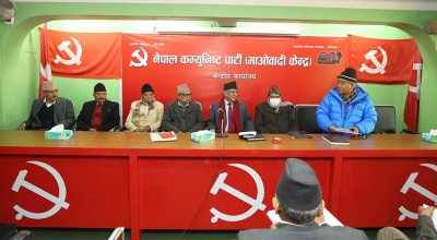 काठमाडौं । नेकपा माओवादी केन्द्रले राष्ट्रपति निर्वाचनमा राष्ट्रिय सहमति खोज्न पहल गर्ने निर्णय गरेको छ । पार्टी केन्द्रीय कार्यालय पेरिसडाँडामा आज बसेको स्थायी समिति बैठकले राष्ट्रपति निर्वाचनमा राष्ट्रिय सहमति खोज्न अन्य दलहरुसँग छलफल गर्ने निर्णय गरेको हो । बैठकपछि पार्टी उपाध्यक्ष कृष्णबहादुर महराले भने, ‘राष्ट्रिय सहमतिअनुसार नै राष्ट्रपति चयन गर्न पहल गर्ने कुराकानी भएको छ…