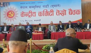काठमाडौं । नेकपा एमालेका अध्यक्ष केपी शर्मा ओलीले एमाले देशकै सबैभन्दा ठूलो पार्टी भएको दाबी गरेका छन् । काठमाडौंमा आजबाट सुरु भएको केन्द्रीय कमिटी बैठकलाई सम्बोधन गर्दै अध्यक्ष ओलीले एमाले कम्युनिष्टहरूमध्ये मात्र ठूलो पार्टी देशकै सबैभन्दा ठूलो पार्टी भएको बताएका हुन् । ‘नेकपा एमाले देशको सबैभन्दा पुरानो र मूलधार बोकेको पार्टी हो भन्न कुनै अप्ठेरो…