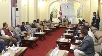 काठमाडौं । राष्ट्रपति रामचन्द्र पौडेलले नवनियुक्त प्रधानन्यायाधीश विश्वम्भरप्रसाद श्रेष्ठलाई पद तथा गोपनियताको शपथ गराएका छन् । राष्ट्रपति कार्यालय शीतल निवासमा आज आयोजित विशेष समारोहमा राष्ट्रपति पौडेलले प्रधानन्यायाधीश श्रेष्ठलाई पद तथा गोपनियताको शपथ गराएका हुन् । समारोहमा राष्ट्रपतिका साथै उपराष्ट्रपति रामसहाय यादव, प्रधानमन्त्री पुष्पकमल दाहाल ‘प्रचण्ड’, सभामुख देवराज घिमिरे, कानुन, न्याय तथा संसदीय मामिलामन्त्री धनराज गुरुङ,…