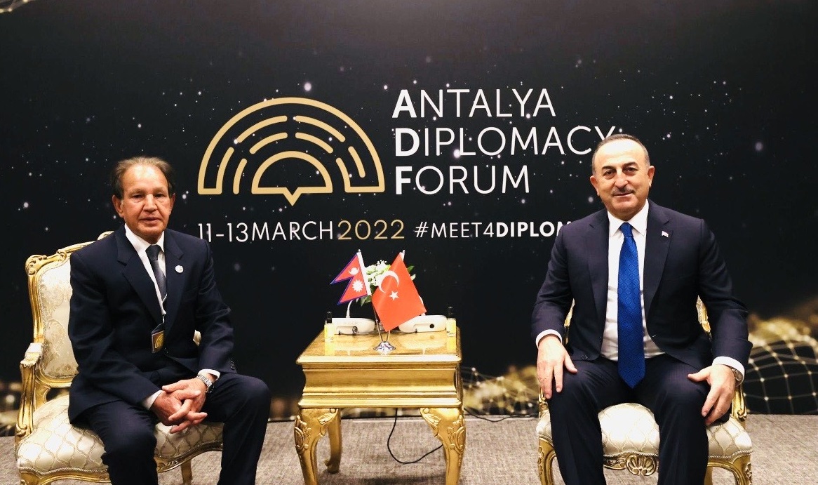 काठमाडौं । अनातलिया कूटनीतिक मञ्चमा भाग लिने नेपाली प्रतिनिधिमण्डलको नेतृत्व गर्दै हाल टर्कीको अनातलियामा रहेका परराष्ट्रमन्त्री डा नारायण खड्का र गणतन्त्र टर्कीका विदेशमन्त्री मेभलुत काभुसोग्लुसँग बिहीबार द्विपक्षीय भेटवार्ता भएको छ । त्यस अवसरमा दुवै देशका परराष्ट्रमन्त्रीले द्विपक्षीय सम्बन्ध र आपसी सहयोगका महत्वपूर्ण पक्षहरुको समीक्षा गर्नाका साथै दुई मुलुकबीच व्यापार र लगानीका अवसरलाई थप विस्तार गर्न…