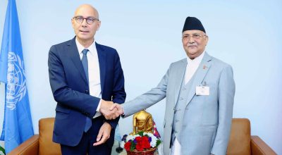वासिङ्टन डिसी । संयुक्त राष्ट्रसङ्घको ७९ औँ महासभामा सहभागी हुन आएकी परराष्ट्रमन्त्री डा आरजु राणा देउवाले राष्ट्रसङ्घका मुख्यालय कार्यालय सञ्चालन सहयोग विभागका उपमहासचिव अतुल खरेसँग भेटवार्ता भएको छ । उनीहरुबीच आज भएको भेटवार्तामा राष्ट्रसङ्घको नेपालसँग सम्बन्ध तथा सहयोगका विविध विषयमा छलफल भएको न्युयोर्कस्थित नेपाली नियोगले जनाएको छ । उक्त विभागले शान्ति स्थापनाका लागि खटिने राष्ट्रसङ्घीय…