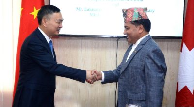 काठमाडौं । नेपाल र चीनका परराष्ट्र मन्त्रालयहरूबीचको कूटनीतिक परामर्श संयन्त्रको १६औँ बैठक आज काठमाडौँमा सम्पन्न भएको छ । बैठकमा नेपाली प्रतिनिधिमण्डलको नेतृत्व परराष्ट्र मन्त्रालयका सचिव सेवा लम्साल र चिनियाँ प्रतिनिधिमण्डलको नेतृत्व चीनका उपविदेशमन्त्री सुन वेइतोङले गरेका थिए । बैठकमा नेपाल र चीनबीचको द्विपक्षीय सम्बन्धका समग्र पक्षबारे समीक्षा गर्नुका साथै विगतमा भएका सम्झौता र समझदारीपत्रको कार्यान्वयनमा…