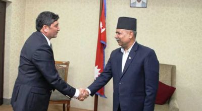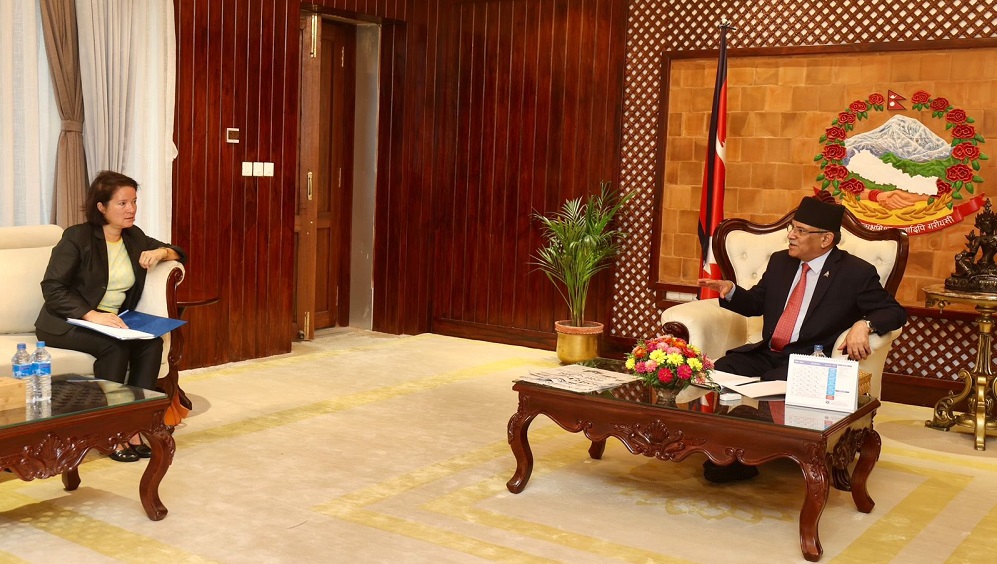 काठमाडौं । नेपालका लागि युरोपेली संघकी राजदूत नोना डेप्रेजले प्रधानमन्त्री पुष्पकमल दाहाल प्रचण्डसँग भेटवार्ता गरेकी छन् । मंगलबार बिहान बालुवाटारस्थित प्रधानमन्त्रीको सरकारी निवासमा पुगेकी राजदूत डेप्रेजले प्रधानमन्त्री प्रचण्डसँग बिदाइ भेटवार्ता गरेकी हुन् । सो क्रममा प्रधानमन्त्री प्रचण्ड र राजदूत डेप्रेजबीच नेपाल–इयुबीचको द्विपक्षीय सम्बन्ध र सहकार्यका विषयमा छलफल भएको छ ।