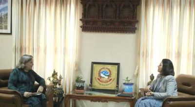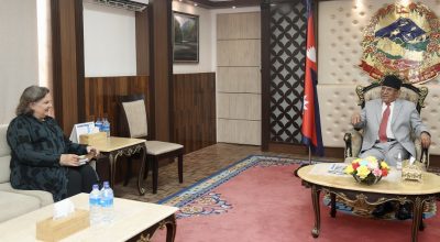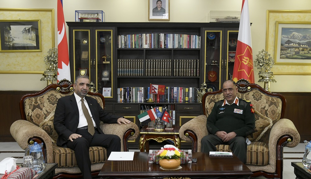 काठमाडौं । प्रधान सेनापति प्रभुराम शर्मा र नेपालका लागि युनाइटेड अरब इमिरेट्स (यूएई) का राजदूत अब्दुल्ला बिन जरवन अल शस्मीबीच भेटवार्ता भएको छ । प्रधान सेनापति शर्माको कार्यकक्ष जंगी अड्डामा मंगलबार भएको भेटमा दुई पक्षीय आपसी हित तथा पारस्परिक सम्बन्धका विषयमा छलफल भएको नेपाली सेनाले जनाएको छ । यस किसिमको भेटघाटले दुई देशबीचको आपसी सम्बन्ध…