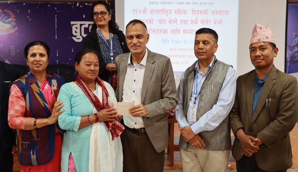 मकै पोल्ने र सालको पात बेच्नेलाई बुटवल उपमहानगरपालिकाको सहयोग