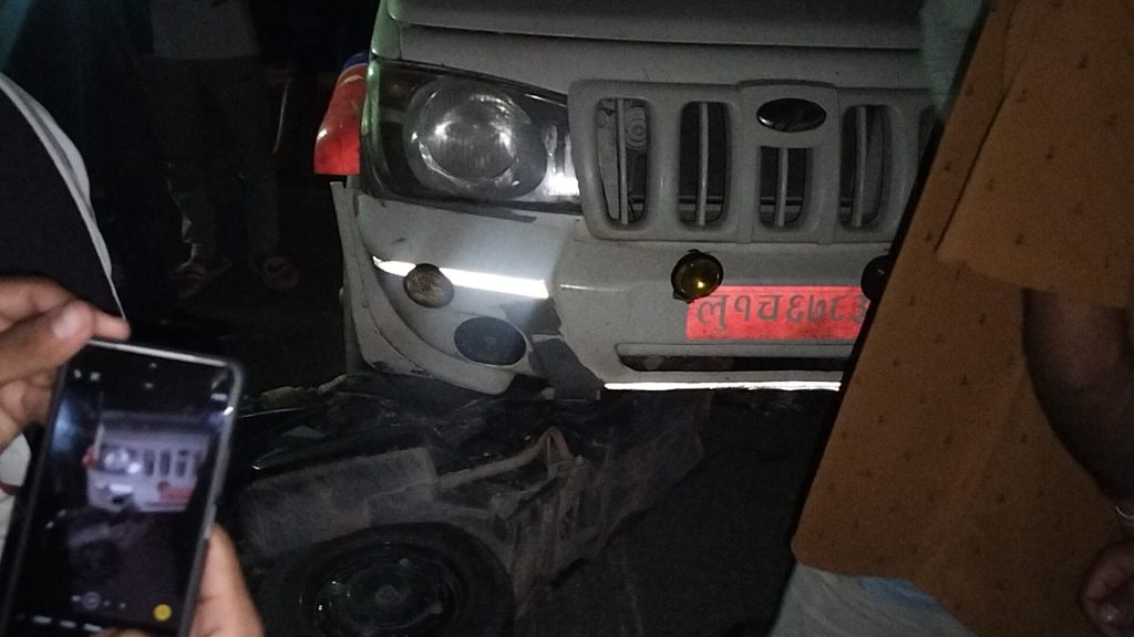 बुटवल । बुटवलको बेलबासमा भएको सडक दुर्घटनामा एक युवतीको मृत्यु भएको छ । बुटवलबाट पश्चिमतर्फ जाँदै गरेको बलेरो जीप, बदेल पोखरीबाट महेन्द्र राजमार्गमा निस्कदै गरेको मोटर साईकल र पश्चिमबाट बुटवल आउदै गरेको स्कुटर एक आपसमा ठोक्कीएर भएको दुर्घटनामा ति युवतीको र्मृत्यु भएको हो । दुर्घटनामा अर्घाखांचीको संन्धिखर्क नगरपालिका घर भई बुटवल-११ देवीनगर बस्दै आएकी २७…