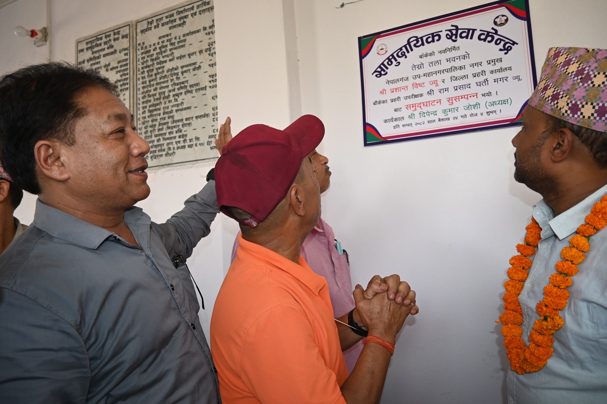 नेपालगन्ज । बाँकेको नेपालगन्जमा संचालनमा रहेको सामुदायिक सेवा केन्द्र तथा सामुदायिक प्रहरी सेवा केन्द्र को नवनिर्मित तेस्रो तलाको उद्घाटन गरिएको छ । नेपालगन्ज उपमहानगरपालिकाका प्रमुख प्रशान्त विष्टले एक कार्यक्रमका बीच सेवा केन्द्रको उदघाटन गरे । वडा नम्बर २ सुनार मण्डीस्थित कार्यालय भवनमा नवनिर्मित तेस्रो तला उद्घाटन गर्दै नगर प्रमुख विष्टले सामुदायिक सेवा केन्द्र तथा सामुदायिक…