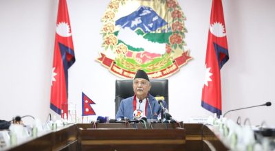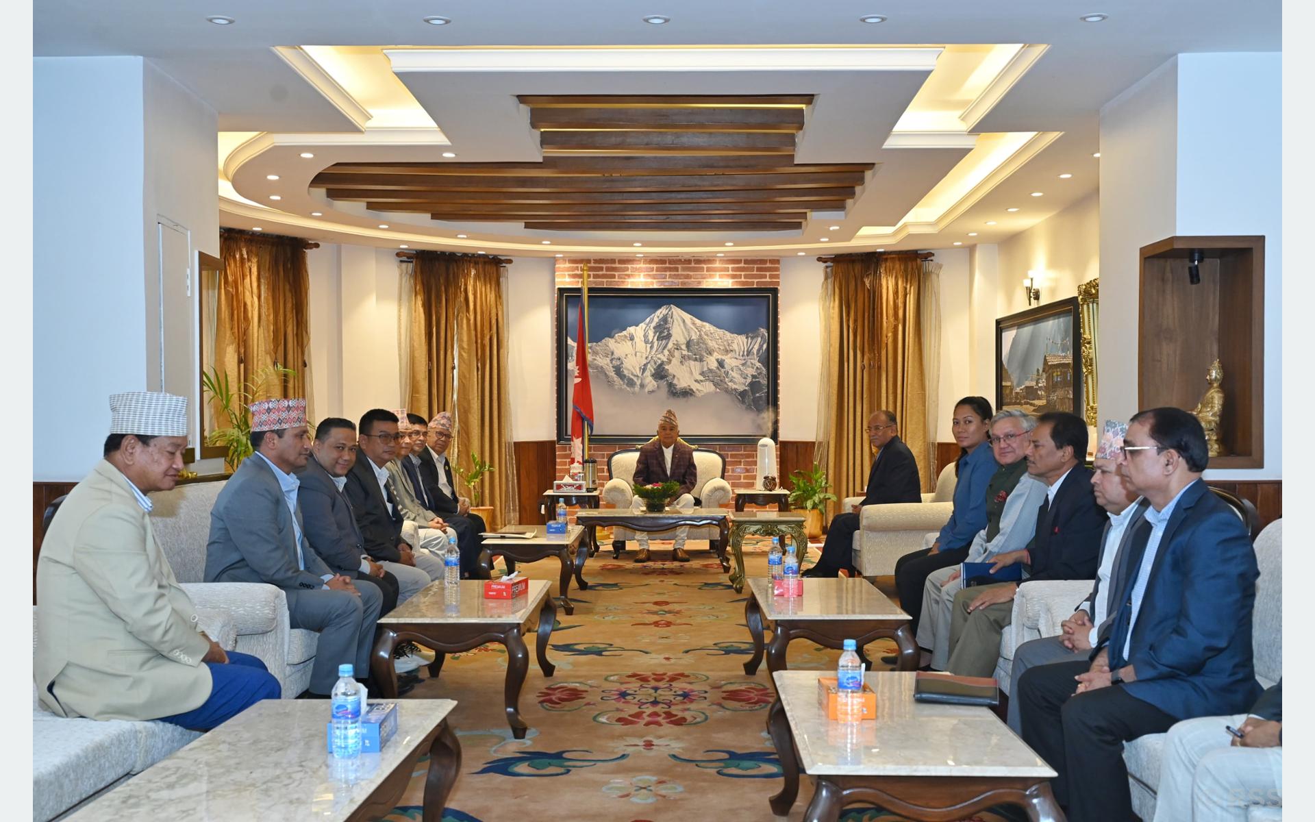 काठमाडौं । राष्ट्रपति रामचन्द्र पौडेलसँग सङ्घीय संसद्मा प्रतिनिधित्व गर्ने प्रमुख प्रतिपक्षसहितका दलका नेताहरूले भेट गरेका छन् । राष्ट्रपति भवन शीतल निवासमा आज प्रमुख प्रतिपक्षी दलका नेता एवं नेकपा (माओवादी केन्द्र) का अध्यक्ष पुष्पकमल दाहाल ‘प्रचण्ड’ सहित प्रतिपक्षमा रहेका दलका नेताहरूले भेट गरेका हुन् । प्रतिपक्ष दलहरूले प्रधानमन्त्री केपी शर्मा ओलीलाई ज्ञापनपत्र बुझाएको सन्दर्भमा सरकारबाट भएका…