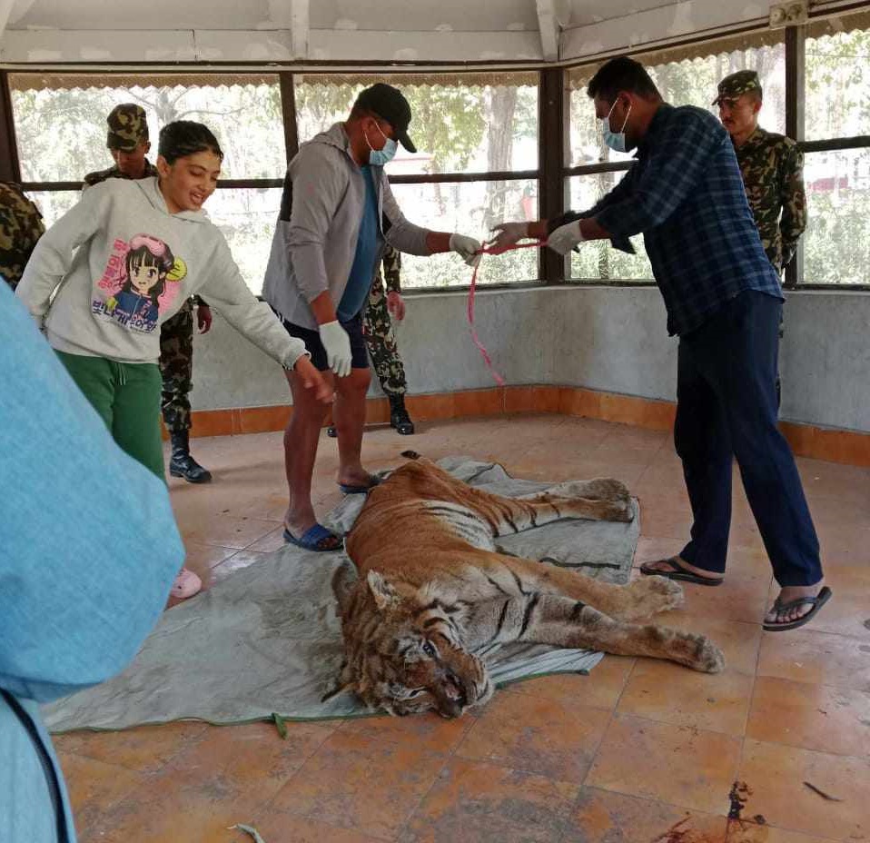 बारा। पर्साको ठोरी गाउँपालिका वडा नं ५ सुवर्णपुरबाट ‘डार्ट’ गरी घाइते अवस्थामा उद्धार गरिएको वयस्क पाटे बाघको मृत्यु भएको छ । घाइते अवस्थामा उद्धार गरेर निकुञ्जले खोरमा राखेर रेखदेख गर्दै आएको बाघको सोमवार बिहान मृत्यु भएको हो । बाराको पर्सा राष्ट्रिय निकुञ्ज आधाबारको खोरमा रहेको घाईते वयस्क पाटे बाघलाई आईतवार राती निकुञ्जका कर्मचारीले खाना दिएका…