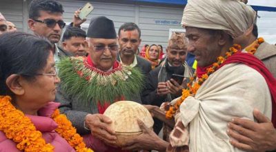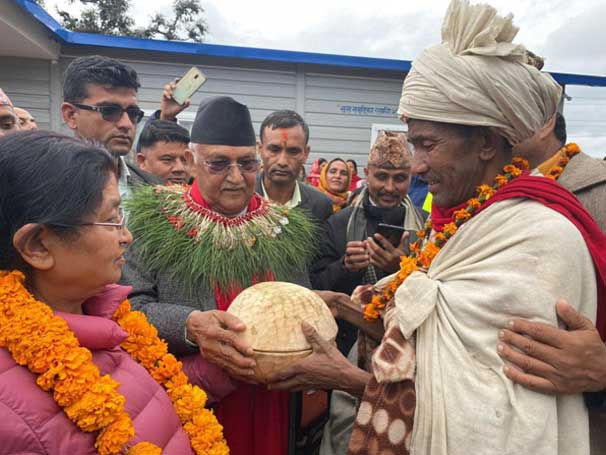 कर्णाली । नेकपा (एमाले)का अध्यक्ष एवं पूर्व प्रधानमन्त्री केपी शर्मा ओलीलाई लोपोन्मुख फिरन्ते राउटे समुदायका मुखिया सूर्यप्रकाश शाहीले कोसी उपहार दिएका छन । कोसी सो समुदायले आफ्नो जीविकोपार्जनका लागि बनाउँदैं आएको काठको सामग्री हो । ‘झुलाघाट चिवा भञ्ज्याङ, समृद्धिका लागि सङ्कल्पयात्रा’ अभियानका क्रममा सोमबार दैलेख जिल्लाको गुराँसे गाउँपालिकामा प्रवेश गर्ने क्रममा मुखिया शाहीले अध्यक्ष ओलीलाई…