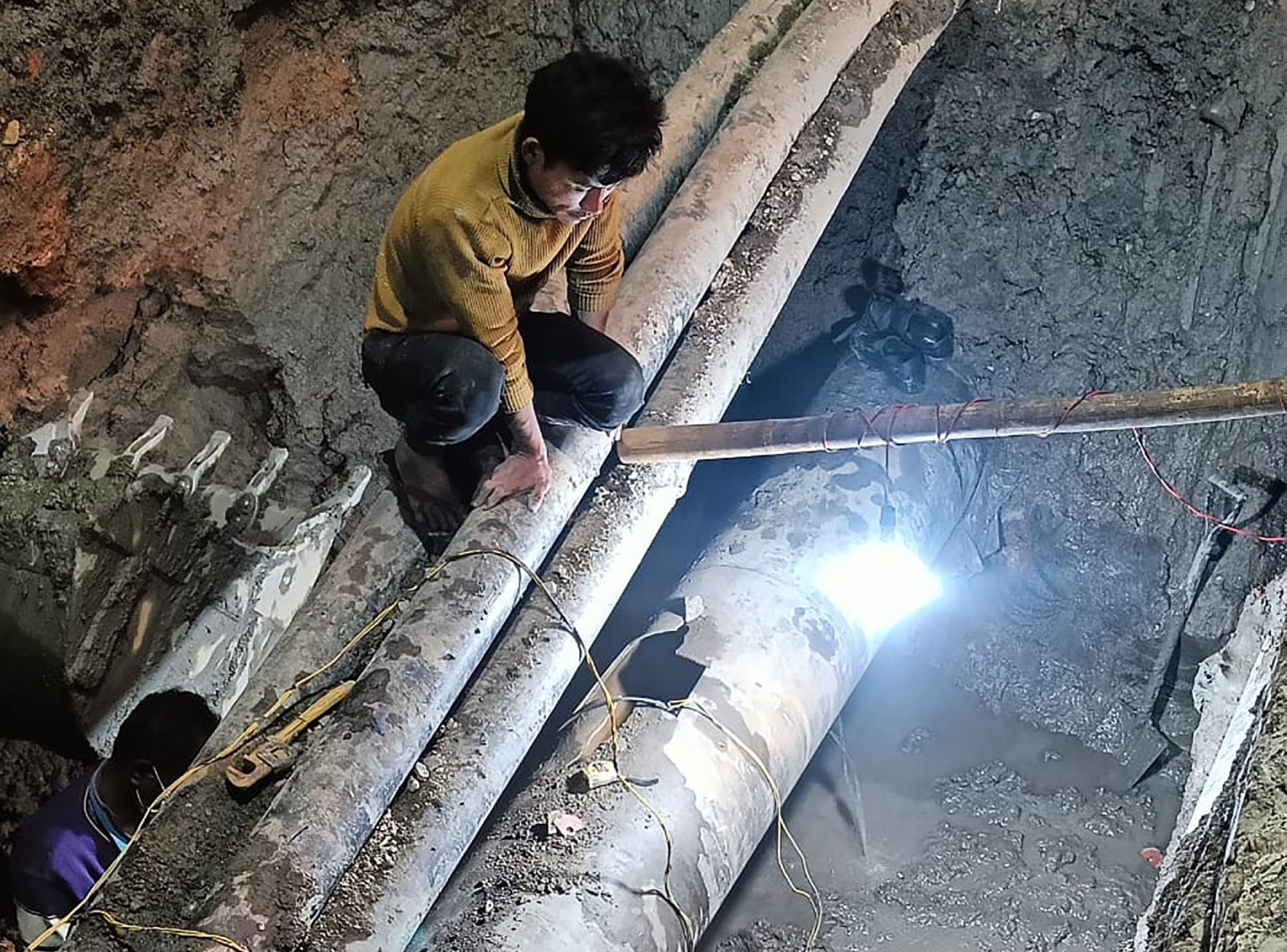काठमाडौं । थापाथलीमा मङ्गलबार बिहान फुटेको मेलम्ची खानेपानी आयोजनाको मुख्य पाइपलाइन मर्मत भएको छ । काठमाडौं उपत्यका खानेपानी लिमिटेड (केयुकेएल)को प्राविधिक टोलीले फुटेको पाइपलाइन आज बिहान ४ बजे मर्मत पूरा गरेको केयुकेएलका इन्जिनियर प्रकाश बरालले जानकारी दिए ।