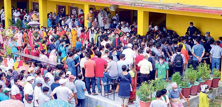 सुनसरी/विराटनगर । सुनसरीको इटहरी उपमहानगरपालिकाले कोरोना फैलिएको भन्दै मंगलबारदेखि नगरपालिका र वडा कार्यालयका अत्यावश्यकबाहेक काम बन्द गर्यो । सात दिनका लागि कार्यालय बन्द गरिए पनि कोरोनाविरुद्ध खोप लगाउन भने नगरवासीको भीड लाग्यो। सोमबार सुरु खोप कार्यक्रममा स्थानीयवासी ठेलमठेल गरी सहभागी भएका थिए । दूरी पालना गर्न आह्वान गर्ने उपमहानगरपालिका र त्यसको पालना गर्नुपर्ने नगरवासी दुवैको…