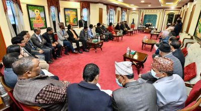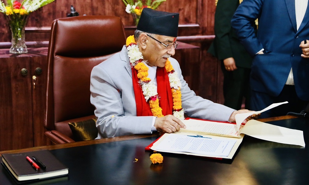 काठमाडौं । नेकपा माओवादी केन्द्र अध्यक्ष पुष्पकमल दाहाल ‘प्रचण्ड’ नेतृत्वको मन्त्रिपरिषद् पहिलो चरणमा प्रधानमन्त्रीसहित आठ सदस्सीय बनेको छ । प्रधानमन्त्रीका रूपमा सोमबार नेकपा माओवादी केन्द्र अध्यक्ष पुष्पकमल दाहाल ‘प्रचण्ड’ले राष्ट्रपति विद्यादेवी भण्डारीबाट पद तथा गोपनीयताको शपथ लिएका हुन् । सोमबार नै पहिलो चरणमा मन्त्रिपरिषद्लाई प्रधानमन्त्रीसहित आठ सदस्सीय बनाइएको हो । सरकारमा प्रचण्डलाई तत्काल सात मन्त्रीको…