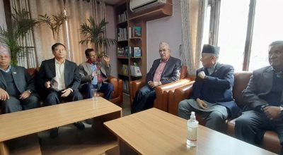 काठमाडौं । राष्ट्रपति पदका उम्मेदवार एमाले नेता सुवास नेम्वाङले एकीकृत समाजवादीका नेतासँग मत मागेका छन् । एकीकृत समाजवादीको केन्द्रीय कार्यालयमा एमालेका नेतासहित पुगेका नेम्वाङले आफ्नो पक्षमा मतदान गर्न आग्रह गरेका हुन् । एकीकृत समावादी अध्यक्ष माधवकुमार नेपाल, महासचिव बेदुराम भुसालसहितका नेतासँग नेम्वाङले राष्ट्रपतिमा आफूलाई मत दिन आग्रह गरेका हुन् । नेम्वाङसहित एमाले उपाध्यक्ष विष्णु पौडेल,…