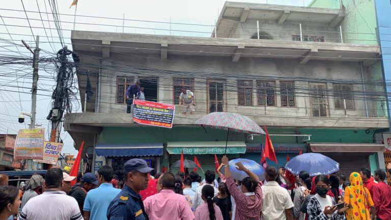 बुटवल । संसदीय राजनीति गरिरहेका ३ राजनीतिक दलसँग सहकार्य गर्दै समाजवादी मोर्चामा सहभागी भएको विप्लव नेतृत्वको नेकपाले रुपन्देहीको भैरहवामा मिटरब्याजीमा लगानी गर्ने एक ब्यापारीको घर कब्जा गरेको घोषणा गरेको छ । मिटरब्याज मार्फत् किसानहरूलाई ठगेको भन्दै विप्लव नेतृत्वको नेकपाले सिद्धार्थनगर नगरपालिका-५ भैरहवा मिलनचोकस्थित रमानन्द बानियाँको घर कब्जा गरेको घोषणा गरेको हो । आज मध्यान्ह सो…