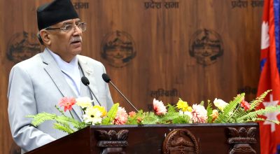 बुटवल । सत्ता गठबन्धनका शीर्ष नेताहरुले लुम्बिनी प्रदेशमा माओवादी नेतृत्वमा सरकार गठन गर्ने निर्णय गरे लगत्तै लुम्बिनी प्रदेशका मुख्यमन्त्री डिल्लीबहादुर चौधरीले प्रदेश सभाबाट विश्वासको मत लिने निर्णय गरेका छन् । मुख्यमन्त्री चौधरीले चैत २२ गते विहीबार विश्वासको मत लिने निर्णय गरेका हुन् । सरकारका प्रवक्ता तथा गृहमन्त्री सन्तोषकुमार पाण्डेका अनुसार मंगलबार बिहान बसेको प्रदेश सरकारको…