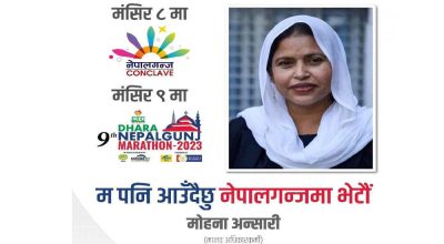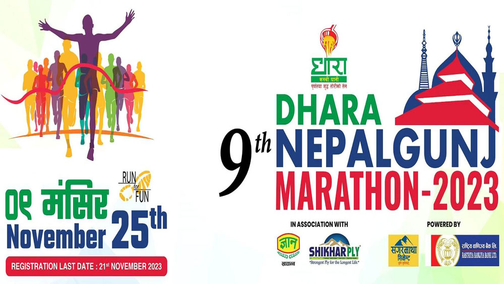 नेपालगन्ज । आगामी मंसिर ९ गते नेपालगन्जमा आयोजना हुने नवौं धारा नेपालगन्ज म्याराथनको पुरस्कार राशीमा वृद्धि गरिएको छ । नेपाल सरकार र तत्कालीन विद्रोही नेकपा माओवादीबीच दशक लामो सशस्त्र द्वन्द्व विधिवत अन्त्य गर्नेगरी भएको विस्तृत शान्ति सम्झौता (५ मंसिर २०६३) स्मरणमा नौ वर्षदेखि आयोजना हुँदै आएको धारा नेपालगन्ज म्याराथनमा यस वर्ष पुरस्कार राशीमा वृद्धि गरिएको…