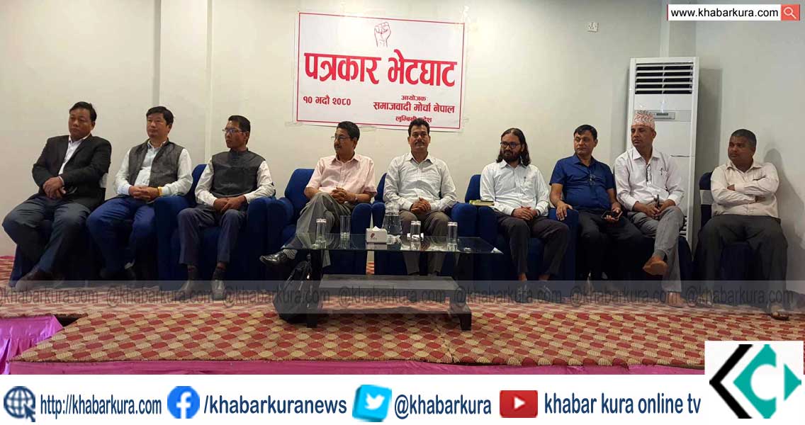 बुटवल । समाजवादी मोर्चा नेपालले भदौ १२ गते बुटवलमा मोर्चाको प्रदेश समिति घोषणा सहित सन्देशसभा गर्ने भएको छ । बुटवलस्थित अन्तर्राष्ट्रिय सम्मेलन केन्द्रमा भदौ १२ गते हुने प्रदेशस्तरीय बृहत् सन्देशसभामा प्रधानमन्त्री प्रचण्ड, माधव नेपाल, विप्लव, उपेन्द्र यादव लगायतका नेता सहभागी हुने मोर्चाले जनाएको छ । सोमबार मोर्चाको तर्फबाट आयोजित पत्रकार सम्मेलनमार्फत जानकारी दिदै उक्त सभाको…