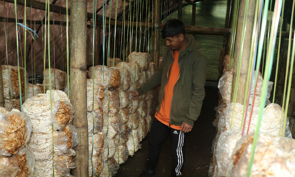 च्याउ खेतीबाट मासिक दुई लाख कमाउँदै चन्द्रकोटका निखिल