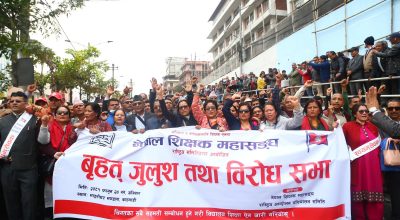 काठमाडौँ । शिक्षा, विज्ञान तथा प्रविधि मन्त्रालय र आन्दोलनरत नेपाल शिक्षक महासङ्घबीच आज छलफल भएको छ । हाल भइरहेको शिक्षक आन्दोलनका बारेमा उहाँहरुबीच छलफल भएको हो । मन्त्रालयका प्रवक्ता शिवकुमार सापकोटाले आज प्रारम्भिक रुपमा शिक्षकसँग आन्दोलनका बारेमा छलफल गरिएको बताए । “आजदेखि हामीले छलफल प्रारम्भ गरेका छौँ । उहाँहरुको चासो, सरोकारका बिषयमा छलफल भयो,” उनले…