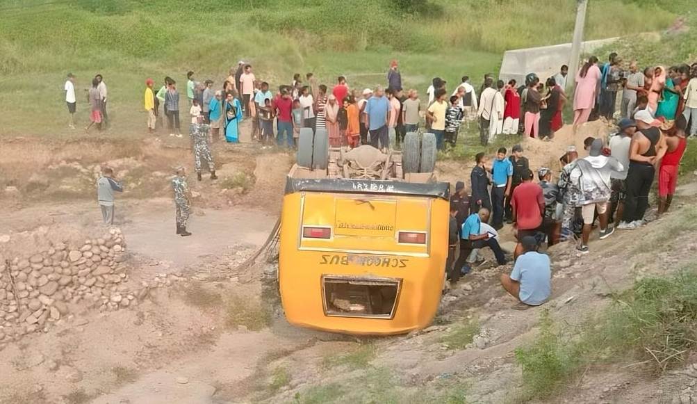 खजुरा । स्कुल बस दुर्घटनामा मृत्यु भएका विद्यार्थीको शोकमा आज खजुरा गाँउपालिकाका सम्पूर्ण निजी तथा सामुदायिक विद्यालयहरुलाई शोक विदा दिईएको छ । खजुरा गाँउपालिकाको शिक्षा शाखा तथा प्याब्सन र एन प्याब्सनको छुट्टाछुट्टै निर्णयबाट पालिमा रहेका सबै विद्यालयहरुलाई शोक विदा दिइएको हो । सोमबार अपरान्ह परीक्षा सकेर घर फर्कने क्रममा खजुराको पुरानो निजी विद्यालय दीपक बोर्डिङको…