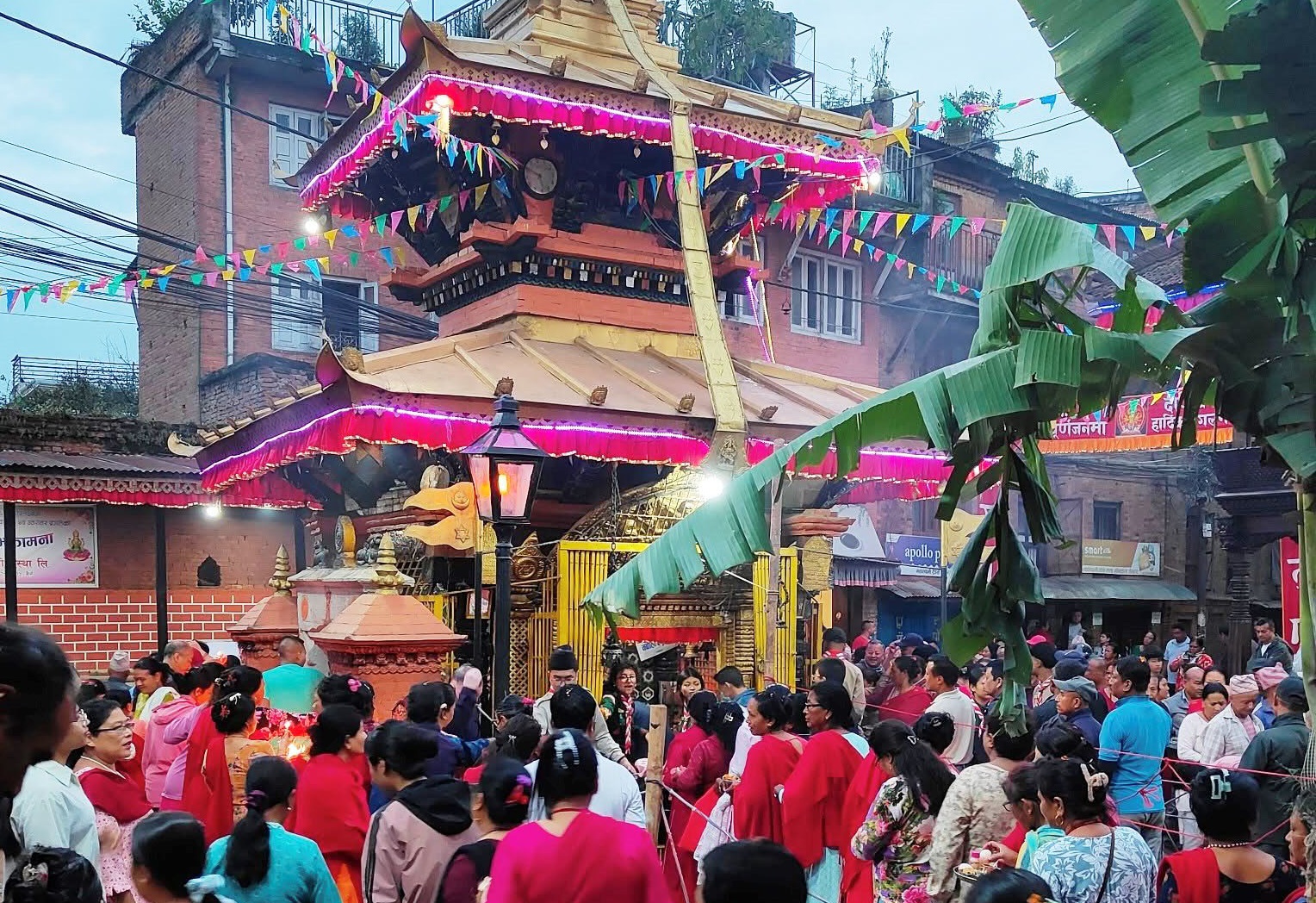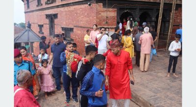 भक्तपुर । यहाँका नेवार समुदायका युवा पुस्ता दसैँमा परम्परागत बाजा बजाउँदै संस्कृति संरक्षणमा सक्रिय भएका छन् । घटस्थापनादेखि यहाँ लाग्ने नौराते अर्थात नवरात्री मेलामा युवायुवतीको समूहले धिमेलगायतका बाजा बजाउँदै आ–आफ्नो टोलबाट मन्दिर जाने र फर्किने गरेका छन् । त्यसरी बाजा बजाउँदै जानेआउनेको समूहले रात गुञ्जयामान हुने गरेको छ । नेवारी पोसाकमा सजिएका उनीहरुले टोलटोलबाट धिमे,…