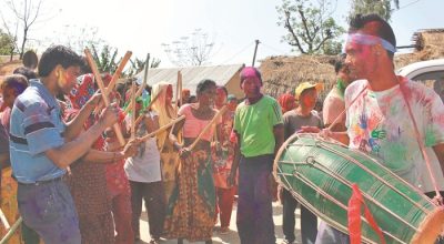 कन्चनपुर । शुक्लाफाँटा नगरपालिका–३ पिपलाडीका थारु समुदायका अगुवा लहानु चौधरी होली पर्वका अवसरमा गाउँको देउथानमा आगो बाल्नमा व्यस्त छन् । देउथानमा बालेको नयाँ आगो घर घरमा भित्र्याउने प्रचलन अनुसार उनी आगो बाल्न व्यस्त देखिएका हुन्। होलीका अवसरमा गन्यारी नामक काठबाट निकालिएको आगो घरको चुलोमा बालेर वर्ष भरी निभ्न नदिने गरिएको उनले बताए । “होलीका बेला…