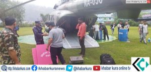 दार्चुला । कालापानी नजिकै दार्चुलाको उत्तरी क्षेत्र व्याँसमा हेलिकप्टरमार्फत निर्वाचन सामग्री ढुवानी गरिएको छ ।
