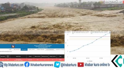 तिनाउ नदीमा आयो बाढी, दिउँसो ३ बजेसम्म सतर्कता अपनाउन आग्रह